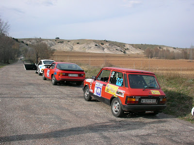 Una metedura de pata en el corto tramo de Regularidad al Hito, en el que fuimos penalizados en 100 puntos por frenar demasiado ante un Control de Tiempos, nos apeó de los puestos de cabeza y ya no pudimos remontar, pues los rivales iban mejorando sus tiempos y no nos dieron opción para ello.Comentar que en estos Rallys, que organiza TRECE, cada punto de penalización corresponde a 1 décima de segundo de adelanto o retraso con respecto al tiempo teórico de paso de cada participante. Podéis haceros una idea del nivel de exactitud con el que se compite si os digo que el equipo ganador sumó un total de 25 ceros en los controles. El segundo clasificado, Martinez-Huarte, con un Alfa 2000 GTV, consiguió 22 ceros, y el tercero, de Pablos-de Pablos, con otro Alfa 2000 GTV, hizo 20 ceros. Nosotros nos clasificamos el 17º, con 13 ceros en nuestro haber. No estuvo mal.